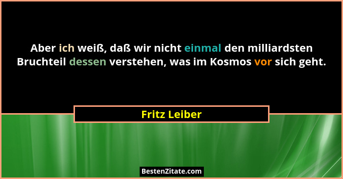 Aber ich weiß, daß wir nicht einmal den milliardsten Bruchteil dessen verstehen, was im Kosmos vor sich geht.