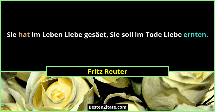 Sie hat im Leben Liebe gesäet, Sie soll im Tode Liebe ernten.