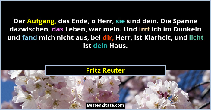 Der Aufgang, das Ende, o Herr, sie sind dein. Die Spanne dazwischen, das Leben, war mein. Und irrt ich im Dunkeln und fand mich nicht aus, bei dir, Herr, ist Klarheit, und licht ist dein Haus.