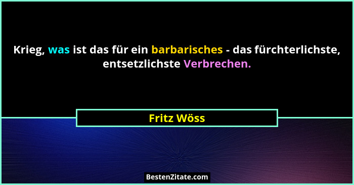 Krieg, was ist das für ein barbarisches - das fürchterlichste, entsetzlichste Verbrechen.