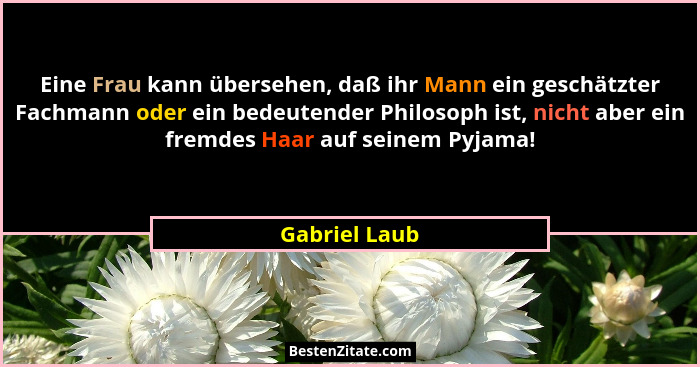 Eine Frau kann übersehen, daß ihr Mann ein geschätzter Fachmann oder ein bedeutender Philosoph ist, nicht aber ein fremdes Haar auf seinem Pyjama!