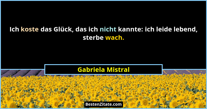 Ich koste das Glück, das ich nicht kannte: ich leide lebend, sterbe wach.