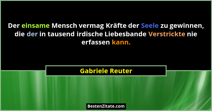 Der einsame Mensch vermag Kräfte der Seele zu gewinnen, die der in tausend irdische Liebesbande Verstrickte nie erfassen kann.