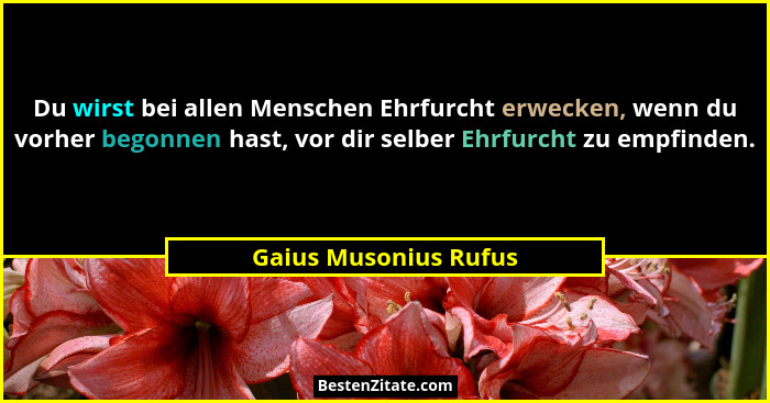 Du wirst bei allen Menschen Ehrfurcht erwecken, wenn du vorher begonnen hast, vor dir selber Ehrfurcht zu empfinden.