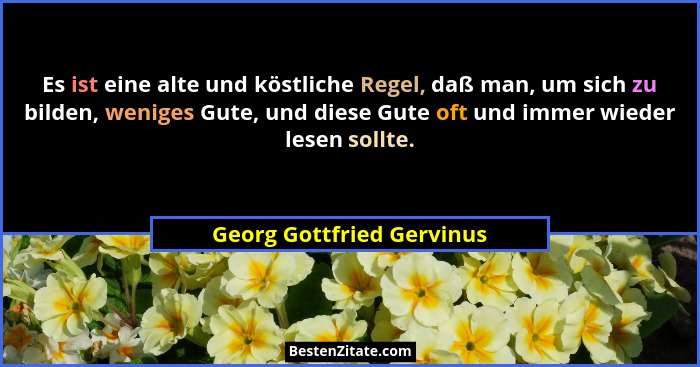 Es ist eine alte und köstliche Regel, daß man, um sich zu bilden, weniges Gute, und diese Gute oft und immer wieder lesen sollte.