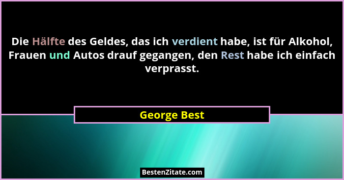 Die Hälfte des Geldes, das ich verdient habe, ist für Alkohol, Frauen und Autos drauf gegangen, den Rest habe ich einfach verprasst.