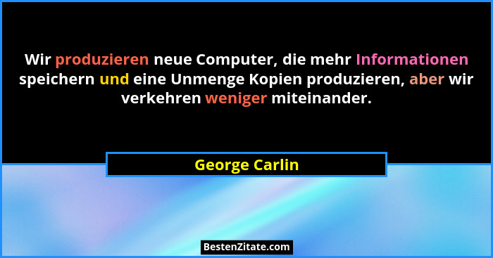 Wir produzieren neue Computer, die mehr Informationen speichern und eine Unmenge Kopien produzieren, aber wir verkehren weniger miteinander.