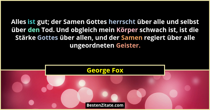Alles ist gut; der Samen Gottes herrscht über alle und selbst über den Tod. Und obgleich mein Körper schwach ist, ist die Stärke Gottes über allen, und der Samen regiert über alle ungeordneten Geister.