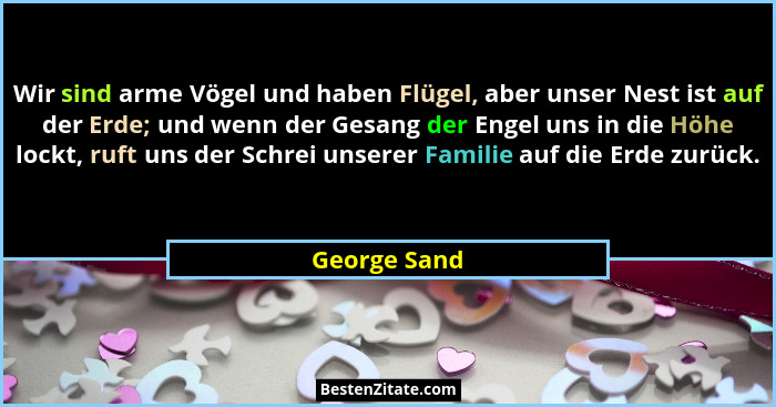 Wir sind arme Vögel und haben Flügel, aber unser Nest ist auf der Erde; und wenn der Gesang der Engel uns in die Höhe lockt, ruft uns der Schrei unserer Familie auf die Erde zurück.