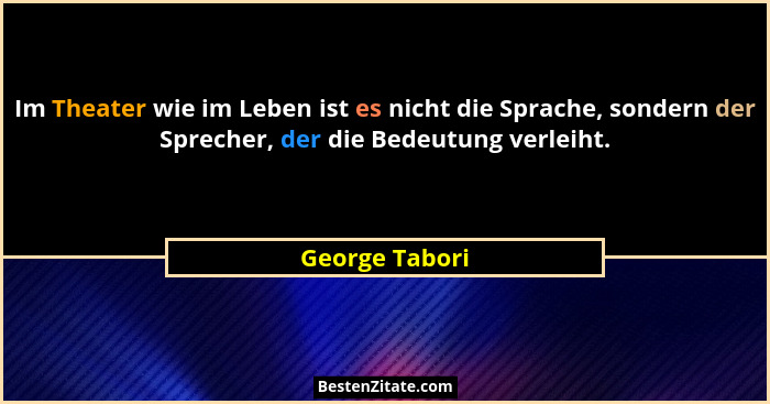 Im Theater wie im Leben ist es nicht die Sprache, sondern der Sprecher, der die Bedeutung verleiht.