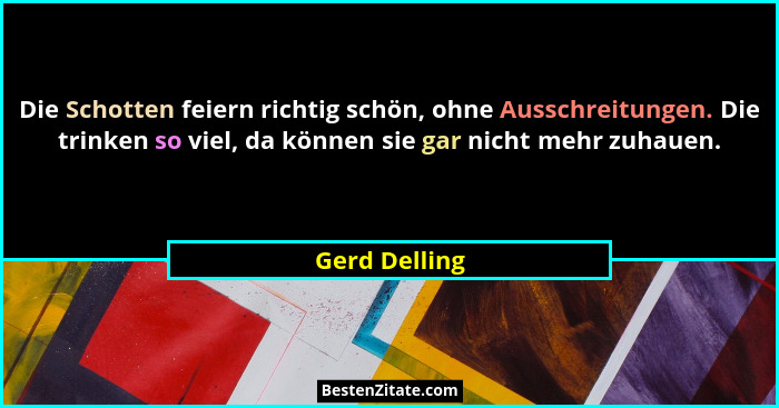 Die Schotten feiern richtig schön, ohne Ausschreitungen. Die trinken so viel, da können sie gar nicht mehr zuhauen.