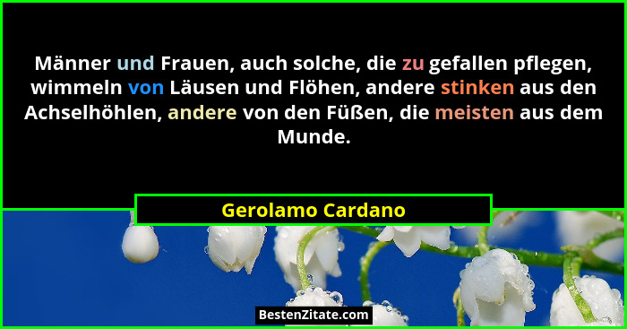 Männer und Frauen, auch solche, die zu gefallen pflegen, wimmeln von Läusen und Flöhen, andere stinken aus den Achselhöhlen, andere von den Füßen, die meisten aus dem Munde.