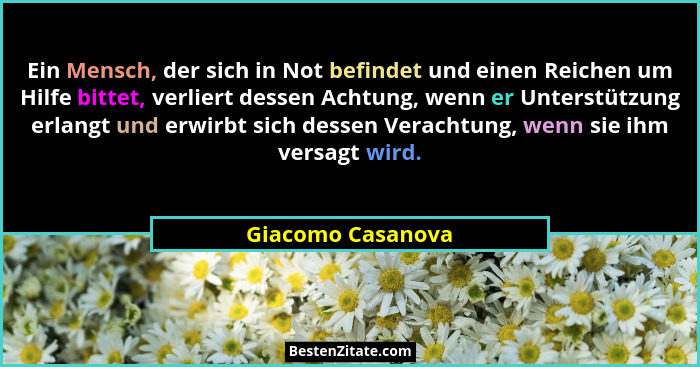 Ein Mensch, der sich in Not befindet und einen Reichen um Hilfe bittet, verliert dessen Achtung, wenn er Unterstützung erlangt und erwirbt sich dessen Verachtung, wenn sie ihm versagt wird.