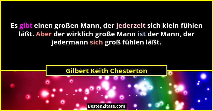 Es gibt einen großen Mann, der jederzeit sich klein fühlen läßt. Aber der wirklich große Mann ist der Mann, der jedermann sich groß fühlen läßt.