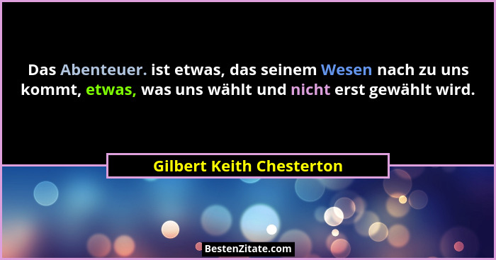 Das Abenteuer. ist etwas, das seinem Wesen nach zu uns kommt, etwas, was uns wählt und nicht erst gewählt wird.