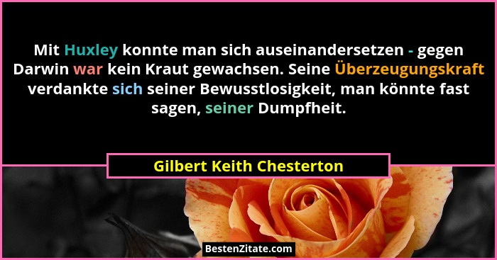 Mit Huxley konnte man sich auseinandersetzen - gegen Darwin war kein Kraut gewachsen. Seine Überzeugungskraft verdankte sich seiner Bewusstlosigkeit, man könnte fast sagen, seiner Dumpfheit.