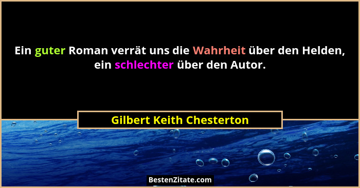 Ein guter Roman verrät uns die Wahrheit über den Helden, ein schlechter über den Autor.