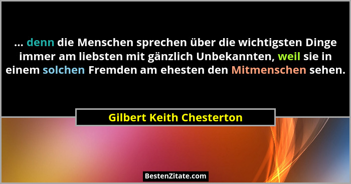 ... denn die Menschen sprechen über die wichtigsten Dinge immer am liebsten mit gänzlich Unbekannten, weil sie in einem solchen Fremden am ehesten den Mitmenschen sehen.