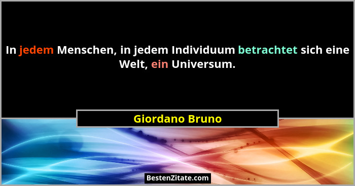 In jedem Menschen, in jedem Individuum betrachtet sich eine Welt, ein Universum.