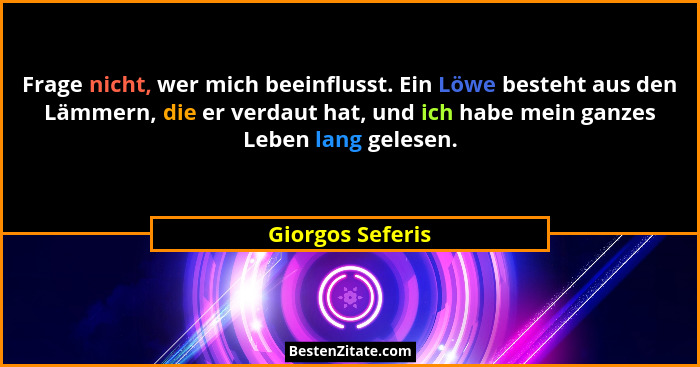 Frage nicht, wer mich beeinflusst. Ein Löwe besteht aus den Lämmern, die er verdaut hat, und ich habe mein ganzes Leben lang gelesen.
