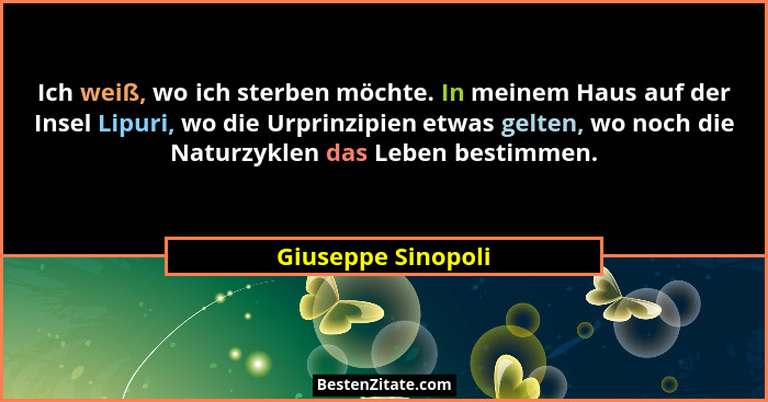 Ich weiß, wo ich sterben möchte. In meinem Haus auf der Insel Lipuri, wo die Urprinzipien etwas gelten, wo noch die Naturzyklen das Leben bestimmen.