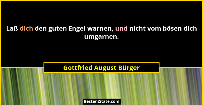 Laß dich den guten Engel warnen, und nicht vom bösen dich umgarnen.