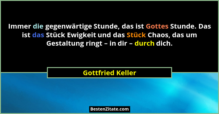 Immer die gegenwärtige Stunde, das ist Gottes Stunde. Das ist das Stück Ewigkeit und das Stück Chaos, das um Gestaltung ringt – in dir – durch dich.