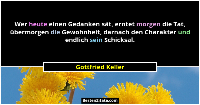 Wer heute einen Gedanken sät, erntet morgen die Tat, übermorgen die Gewohnheit, darnach den Charakter und endlich sein Schicksal.