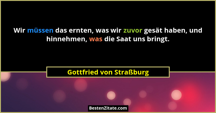 Wir müssen das ernten, was wir zuvor gesät haben, und hinnehmen, was die Saat uns bringt.