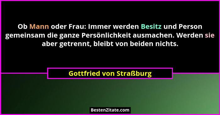 Ob Mann oder Frau: Immer werden Besitz und Person gemeinsam die ganze Persönlichkeit ausmachen. Werden sie aber getrennt, bleibt von beiden nichts.
