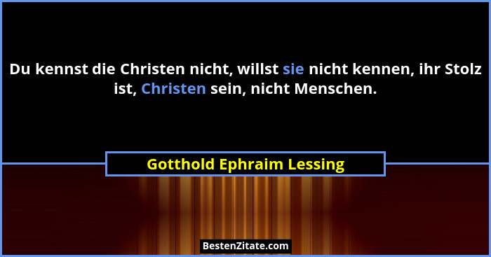 Du kennst die Christen nicht, willst sie nicht kennen, ihr Stolz ist, Christen sein, nicht Menschen.