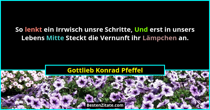 So lenkt ein Irrwisch unsre Schritte, Und erst in unsers Lebens Mitte Steckt die Vernunft ihr Lämpchen an.
