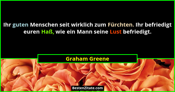 Ihr guten Menschen seit wirklich zum Fürchten. Ihr befriedigt euren Haß, wie ein Mann seine Lust befriedigt.