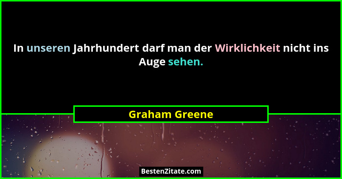 In unseren Jahrhundert darf man der Wirklichkeit nicht ins Auge sehen.