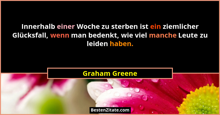 Innerhalb einer Woche zu sterben ist ein ziemlicher Glücksfall, wenn man bedenkt, wie viel manche Leute zu leiden haben.