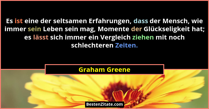 Es ist eine der seltsamen Erfahrungen, dass der Mensch, wie immer sein Leben sein mag, Momente der Glückseligkeit hat; es lässt sich immer ein Vergleich ziehen mit noch schlechteren Zeiten.