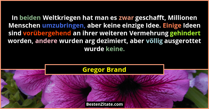 In beiden Weltkriegen hat man es zwar geschafft, Millionen Menschen umzubringen, aber keine einzige Idee. Einige Ideen sind vorübergehend an ihrer weiteren Vermehrung gehindert worden, andere wurden arg dezimiert, aber völlig ausgerottet wurde keine.