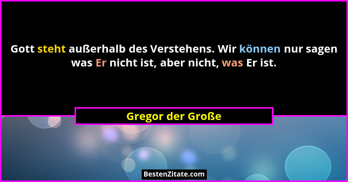 Gott steht außerhalb des Verstehens. Wir können nur sagen was Er nicht ist, aber nicht, was Er ist.