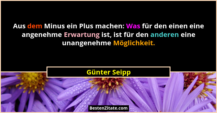 Aus dem Minus ein Plus machen: Was für den einen eine angenehme Erwartung ist, ist für den anderen eine unangenehme Möglichkeit.