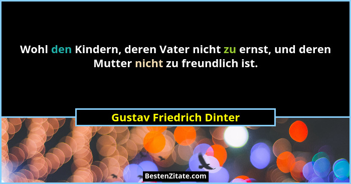 Wohl den Kindern, deren Vater nicht zu ernst, und deren Mutter nicht zu freundlich ist.