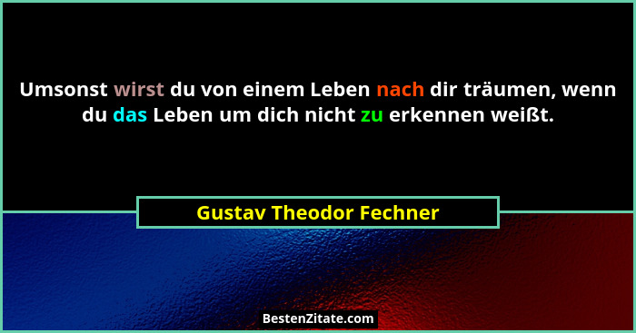 Umsonst wirst du von einem Leben nach dir träumen, wenn du das Leben um dich nicht zu erkennen weißt.