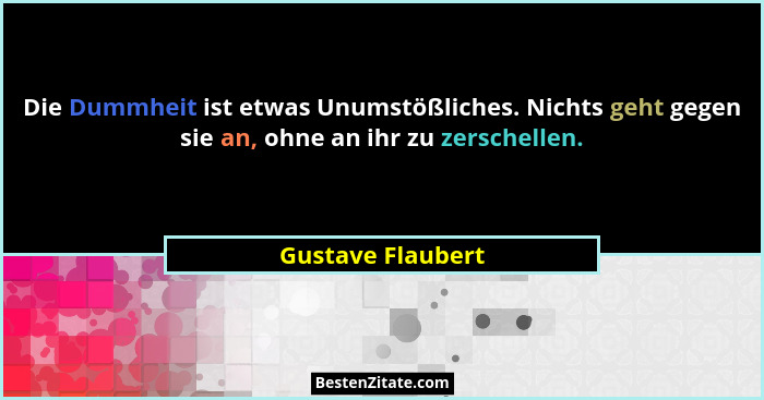 Die Dummheit ist etwas Unumstößliches. Nichts geht gegen sie an, ohne an ihr zu zerschellen.