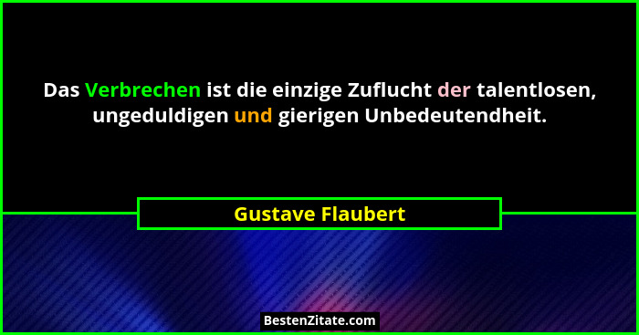 Das Verbrechen ist die einzige Zuflucht der talentlosen, ungeduldigen und gierigen Unbedeutendheit.