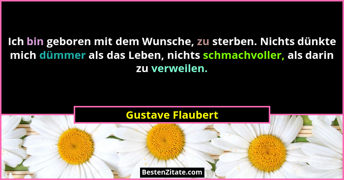 Ich bin geboren mit dem Wunsche, zu sterben. Nichts dünkte mich dümmer als das Leben, nichts schmachvoller, als darin zu verweilen.