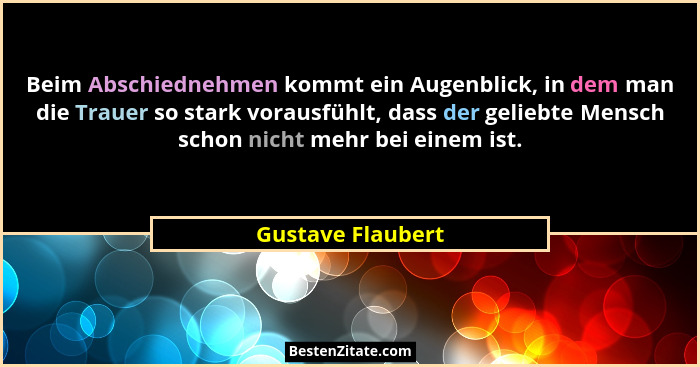 Beim Abschiednehmen kommt ein Augenblick, in dem man die Trauer so stark vorausfühlt, dass der geliebte Mensch schon nicht mehr bei einem ist.