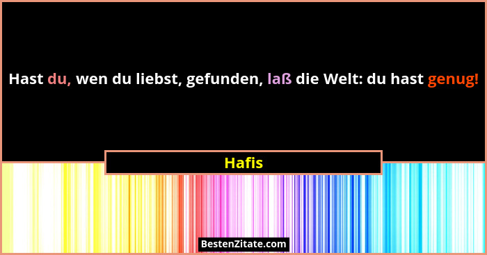Hast du, wen du liebst, gefunden, laß die Welt: du hast genug!