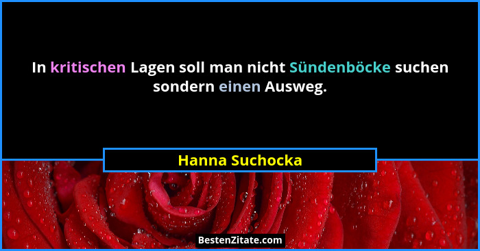 In kritischen Lagen soll man nicht Sündenböcke suchen sondern einen Ausweg.