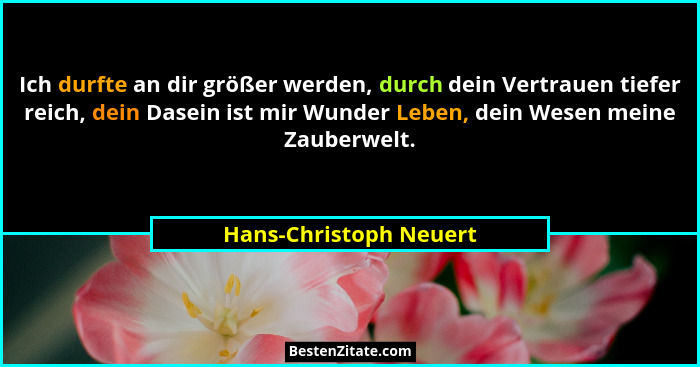 Ich durfte an dir größer werden, durch dein Vertrauen tiefer reich, dein Dasein ist mir Wunder Leben, dein Wesen meine Zauberwelt.