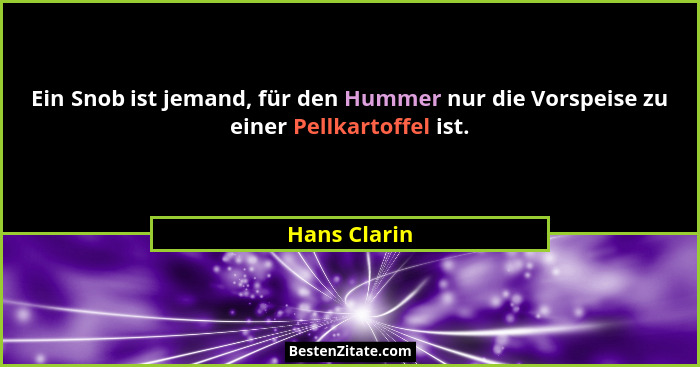 Ein Snob ist jemand, für den Hummer nur die Vorspeise zu einer Pellkartoffel ist.