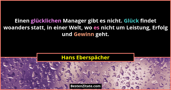 Einen glücklichen Manager gibt es nicht. Glück findet woanders statt, in einer Welt, wo es nicht um Leistung, Erfolg und Gewinn geht.